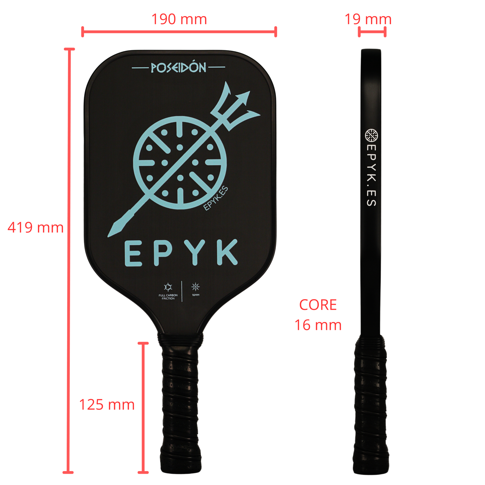 La pala POSEIDON de EPYK está diseñada para jugadores de nivel medio a avanzado que buscan optimizar su rendimiento en la pista. Con su construcción en fibra de carbono, ofrece una combinación superior de potencia y control, ideal para quienes desean mejorar su técnica y dominar el juego. Su diseño avanzado proporciona la precisión y el confort necesarios para enfrentar cada desafío con confianza. Con la POSEIDON, estarás listo para alcanzar nuevas alturas en el pickleball y destacar en cada partido. ¡Haz que cada golpe sea excepcional con POSEIDON!